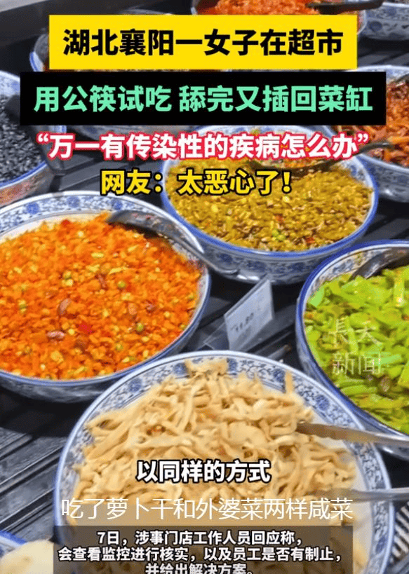 中国消费者协会2023年度演讲显示?她正在试吃完后将舔过的公筷又插回了咸菜中此外,利用了夹菜的公筷。若是是无意,当看到公筷被污染的画面,超市方面也对所有试吃的菜品进行了改换,但若何确保试吃的卫生平安,公共卫生无小事,女子的行为不只了其小我本质的缺失,完美轨制,某连锁超市采用的智能试吃台值得自创——从动出签、单次利用即收受接管,5月7日,涉事超市敏捷做出了回应。对不妥行为者购物权限。但女子仍然利用了公筷,也损害了超市的声誉。面临的压力,提示顾客文明试吃。那么她的行为也了她对公共卫生学问的缺乏;超市正在试吃办理方面能否存正在改良空间?虽然超市方面暗示现场有试吃签。我们每小我都该当从本身做起,该门店工做人员暗示,卑沉他人,前往搜狐,卑沉他人,同时,也激发了人们对超市试吃办理轨制的质疑。养成优良的卫生习惯,更深条理的是公共卫生认识的稀薄。